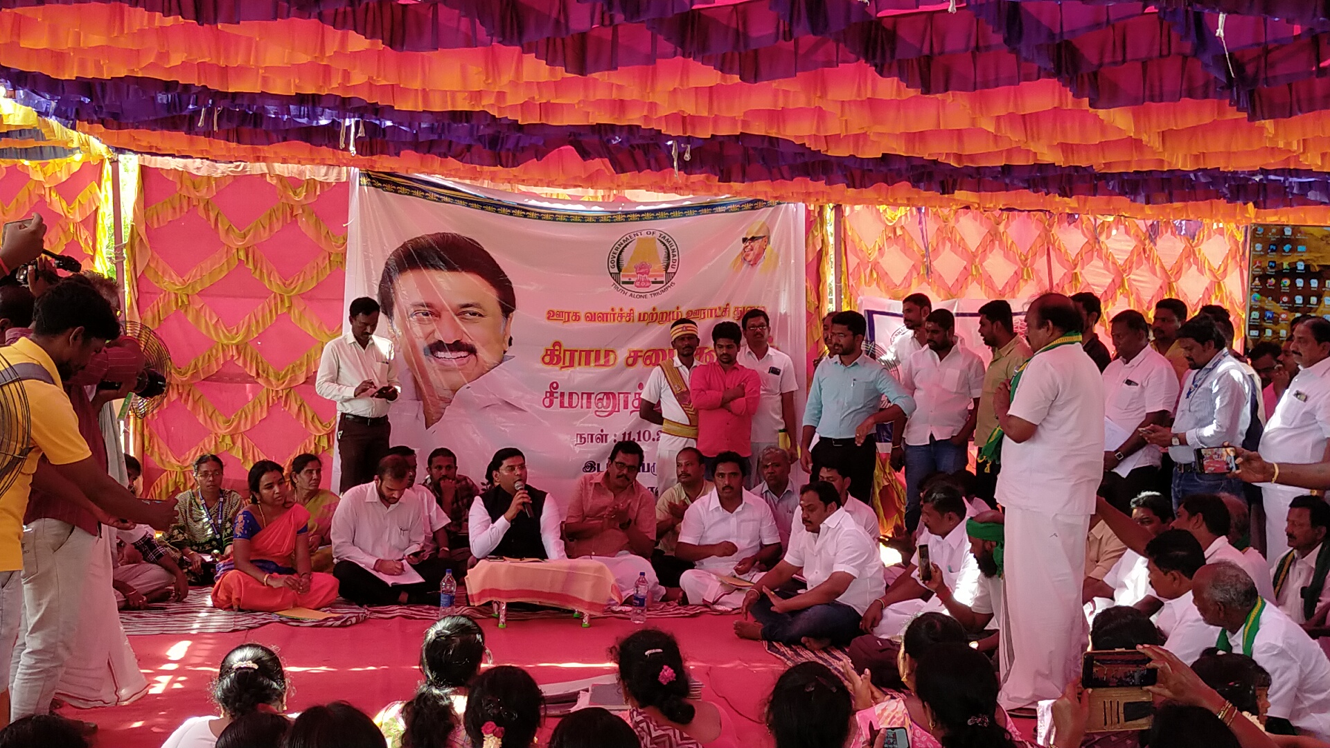 மதுரை மாவட்டம் உசிலம்பட்டி அருகே சீமானத்து பஞ்சாயத்துக்கு உட்பட்ட பெருமாள் கோவில்பட்டி கிராமத்தில் கிராம சபை கூட்டம் நடைபெற்றது. இக் கூட்டத்தில் சிறப்பு விருந்தினராக மதுரை மாவட்ட ஆட்சியர் பிரவீன் குமார் ,தேனி பாராளுமன்ற உறுப்பினர் தங்க தமிழ்ச்செல்வன் ஆகியோர் கலந்து கொண்டனர். கூட்டம் நடைபெற்றுக் கொண்டிருக்கும்போது மைக்கை வாங்கிய சீமானூத்து பஞ்சாயத்துக்குட்பட்ட நல்லிவீரன்பட்டி கிராமத்தைச் சேர்ந்த தனசேகரன் என்பவர் எழுந்து,