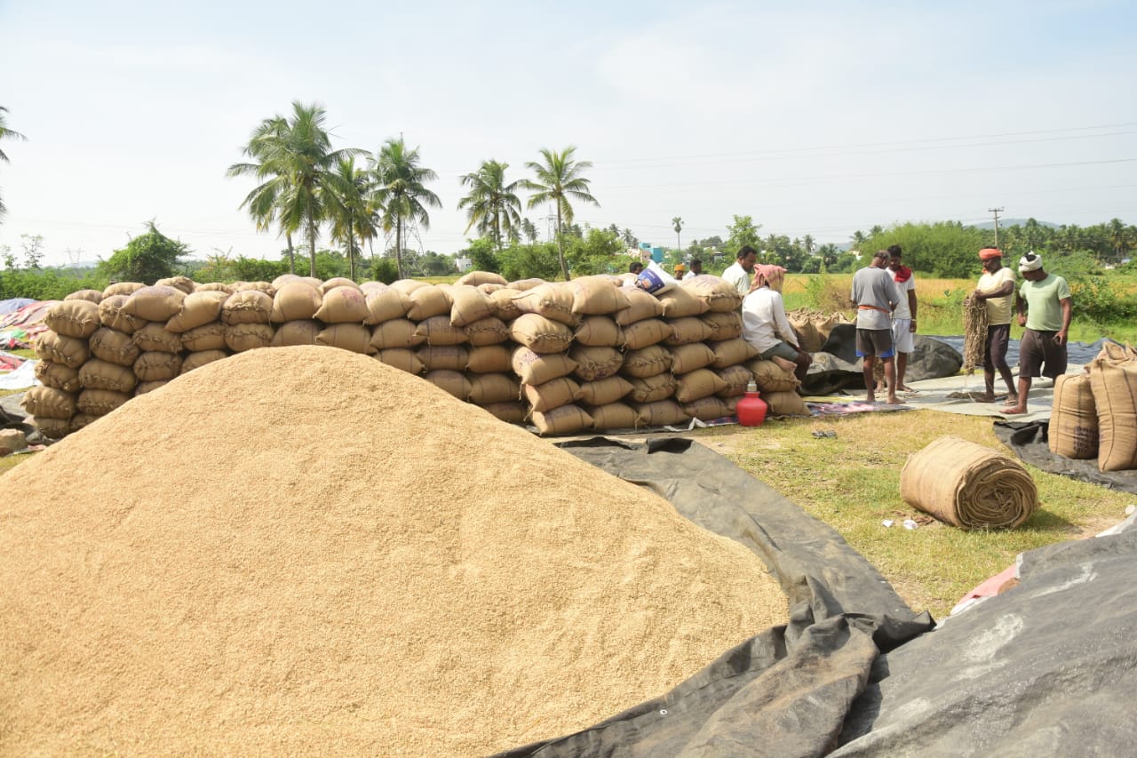 பத்து நாட்களாக கொள்முதல் செய்யாததால் 4 ஆயிரத்திற்கும் மேற்பட்ட நெல் மூட்டைகள் கொள்முதல் நிலையத்தில் தேங்கி கிடப்பதாக விவசாயிகள் கூறும் நிலையில் இன்னும் அறுவடை செய்யாமல் ஆயிரத்திற்கும் மேற்பட்ட ஏக்கரில் அறுவடை செய்யாமல் வயல்களில் நெல்கள் தேங்கி கிடப்பதாக கூறுகின்றனர்
