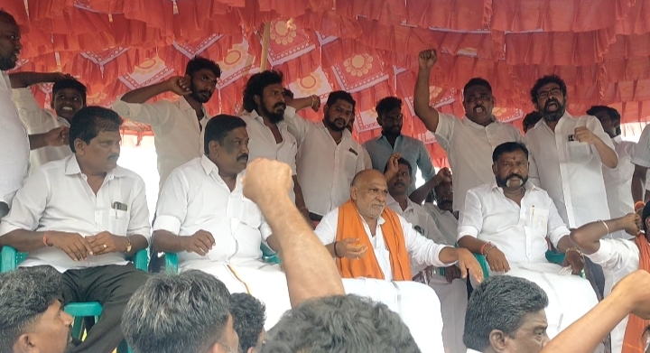தேவர் சிலை முன்பு போராட்டம் நடத்த போலீசார் அனுமதி மறுத்த நிலையில், உசிலம்பட்டி பசும்பொன் முத்துராமலிங்க தேவர் கல்லூரி முன்பு உள்ள காலி இடத்தில் அமர்ந்து போராட்டத்தில் ஈடுபட்டு வருகின்றனர்.,