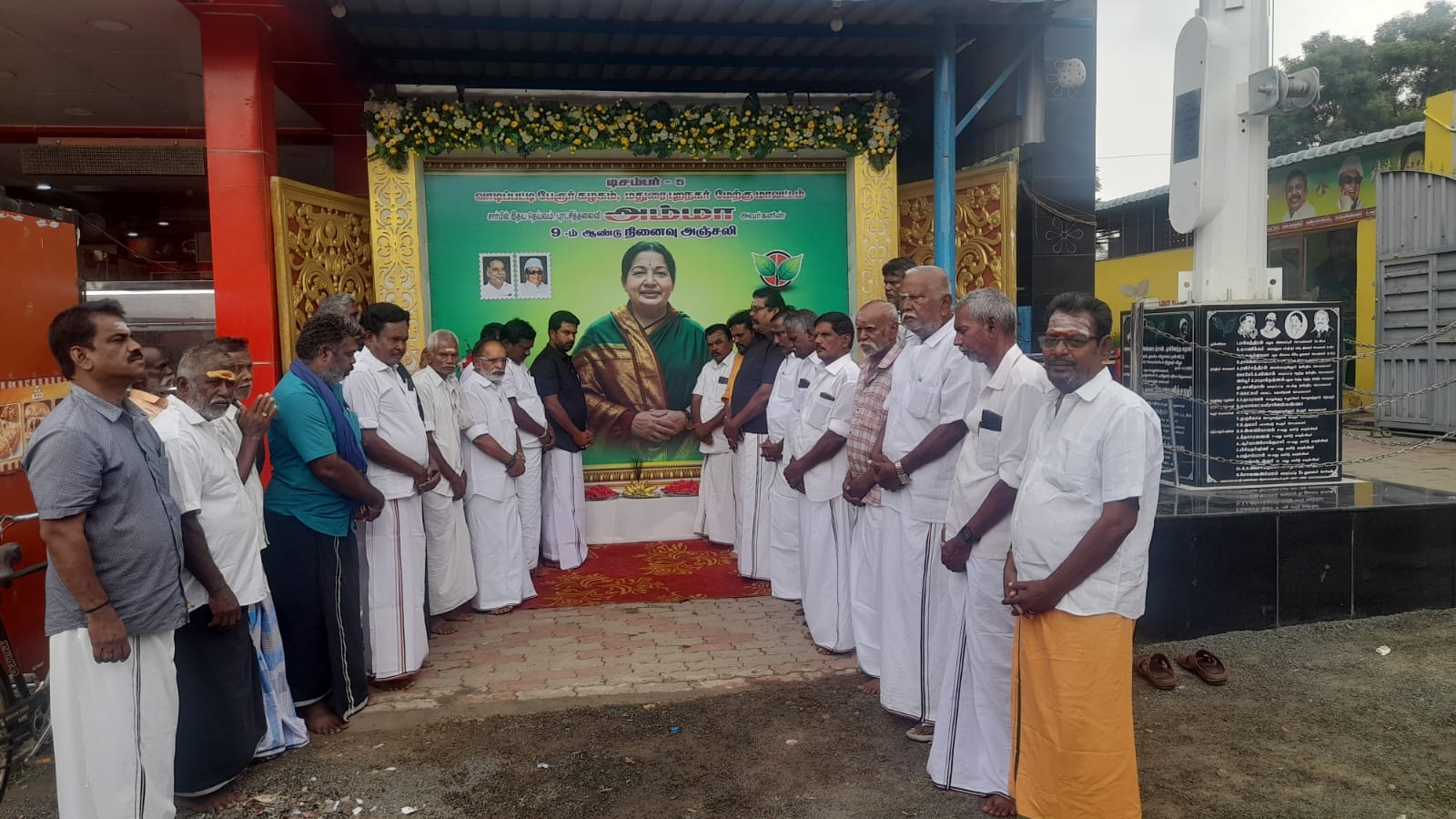 மதுரை புறநகர் மேற்கு மாவட்டம் வாடிப்பட்டி பேரூர் அதிமுக சார்பாக முன்னாள் தமிழ்நாடு முதலமைச்சரும் அதிமுக பொதுச் செயலாளருமான ஜெயலலிதாவின் 9ம் ஆண்டு நினைவு தினத்தை ஒட்டி பேரூர் அதிமுக செயலாளர் அசோக் தலைமையில் மாலை அணிவித்து மரியாதை செய்யப்பட்டது தொடர்ந்துஇரண்டு நிமிடம் மௌன அஞ்சலி செலுத்தப்பட்டது இதில் நிர்வாகிகள் கச்சை கட்டி ரவி, சந்தனத்துரை அம்மா பேரவை இணைச் செயலாளர் ராமசாமி அம்மா பேரவை தனசேகரன் கவுன்சிலர்கள் இளங்கோவன் வார்டு செயலாளர்கள் ராஜேந்திரன், பாண்டி, ரங்கராஜன், ராஜா ,ரங்கராஜன், கோட்டயன் சிவசுப்பிரமணி திருப்பதி முத்துப்பாண்டி சரவணன் சங்கு லில்லி ஞானசேகரன் நிலாமோகன் பிரகாஷ் சரவணன் மற்றும் மற்றும் பேரூர் அதிமுக நிர்வாகிகள் உட்பட பலர் கலந்து கொண்டனர்.