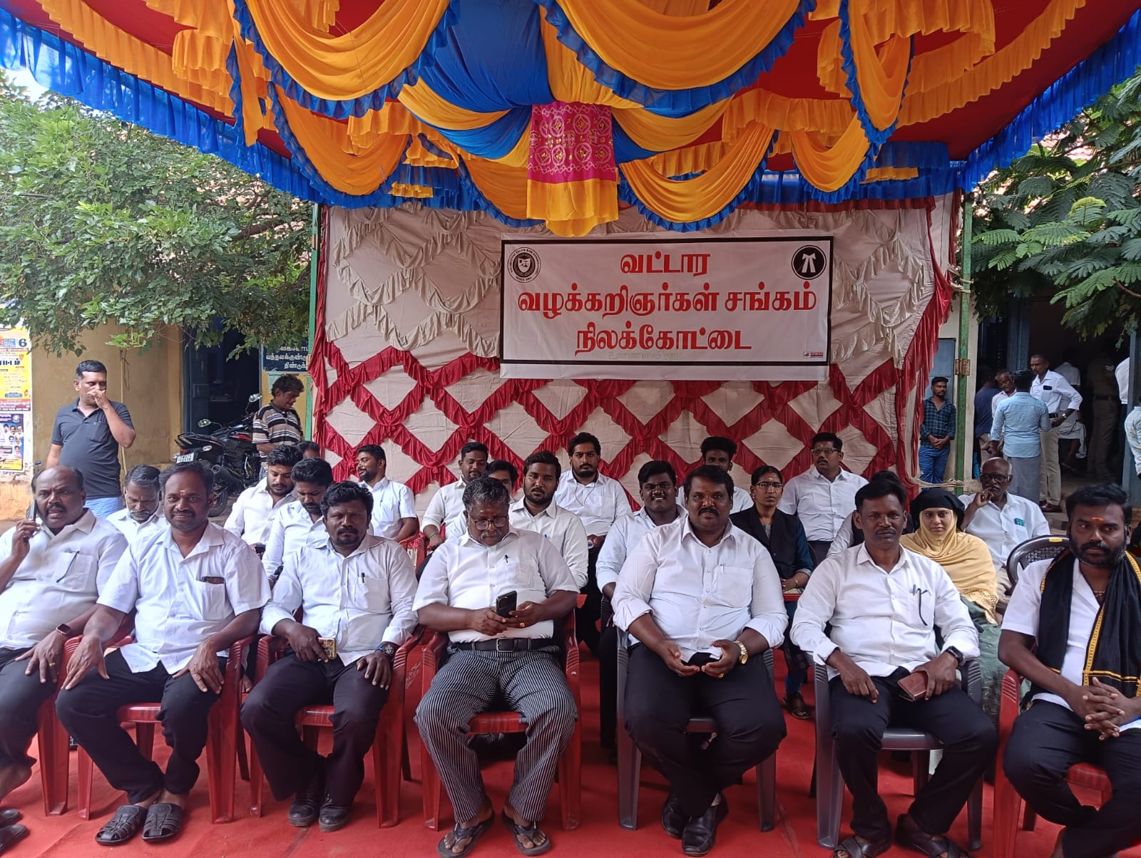 வழக்கறிஞர் பாதுகாப்பு சட்டத்தை உடனடியாக அமல்படுத்துவது உள்ளிட்ட பல்வேறு கோரிக்கைகளை வலியுறுத்தி நிலக்கோட்டை வட்டார வழகறிஞர்கள் சங்கத்தினர் உண்ணாவிரதம்.